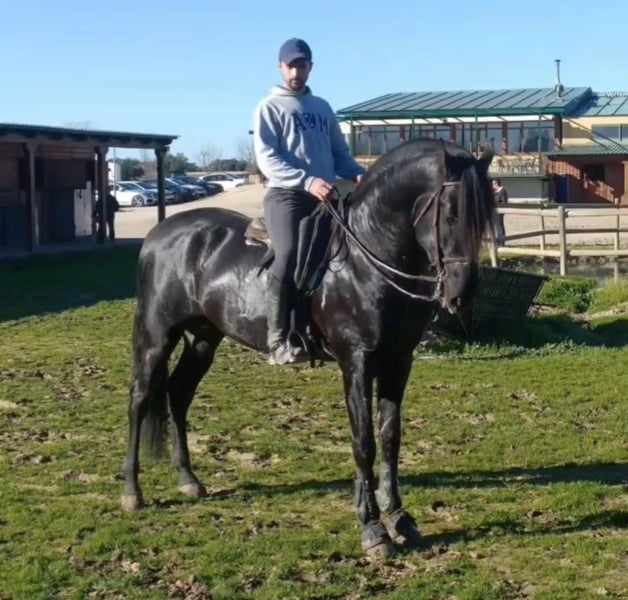 For sale: Pure Spanish Horse (Pura Raza Española). Comes with papers and registered with ANCCE. Black coat with a small star on the forehead. Approximately 7 to 8 years old. Gelding. 1.78 meters at the withers. Very gentle, suitable for riding both in the arena and in the field. IMPORTANT: He has OCD. It is very mild, but he does have it. He was considered suitable for breeding purposes, but he was ultimately gelded. The horse can work normally without any issues. The asking price is €8,000, negotiable. Contact only via WhatsApp.