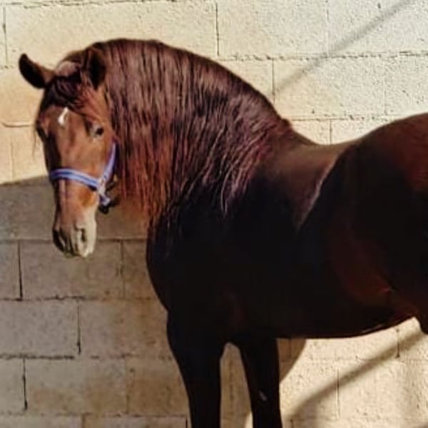 Nous proposons à la vente un magnifique étalon PRE. Ce charmant étalon séduit par son apparence baroque et son énorme charisme ! Il est parfaitement formé et maîtrise le piaffer, le passage, la pirouette, le trot et le pas espagnol. Il connaît également le travail à la main. Lors des ferias et des spectacles, il fait preuve d'une grande maîtrise et d'une grande solidité nerveuse. N'hésitez pas à nous contacter pour de plus amples informations ou pour une visite.