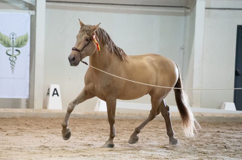 Con gran tristeza nos planteamos encontrar un nuevo hogar para Maestrante. Esta decisión no ha sido fácil, pero varias razones nos empujan en esta dirección. Ya tenemos varias potras de él, varias yeguas preñadas por él para 2025, así como una reserva de semen congelado. Además, Maestrante es un caballo al que le encanta trabajar y recibir atención, necesidades que a veces me cuesta satisfacer por falta de tiempo. Merece ser el centro de atención de alguien que pueda ocuparse plenamente de él, mientras que para nosotros, podría permitirnos descubrir otra joya rara. No ocultaré que estoy buscando un sucesor excepcional para él. Maestrante, que mide 1,71 m, transmite a sus potros una estructura ósea robusta y una gran envergadura. Además de sus cualidades físicas y morfológicas que le predisponen para la doma, destaca por su temperamento fácil y generoso en todas las circunstancias. Ha participado dos veces en el Concurso Central Europeo de la ANCCE, obteniendo una medalla de bronce en 2022 en la categoría de sementales de más de 7 años, y ganando una medalla de oro en 2023 en funcionalidad (prueba montada para sementales de más de 7 años). Maestrante ha sido testado genéticamente por su color, con un resultado de ggEEAaPrlPrl, doble perla sobre base bayo. Se le hicieron radiografías a los 2 y 5 años, y no tiene problemas de OCD ni de navicular. También ha sido testado libre de Piro. Tenga en cuenta: Maestrante no es absolutamente necesario dejar y podría quedarse con nosotros. VanouAll Dressage está cuidando muy bien de él por ahora, y puedo seguir utilizándolo en nuestro programa de cría. Por lo tanto, el precio de Maestrante refleja la calidad de este caballo.
