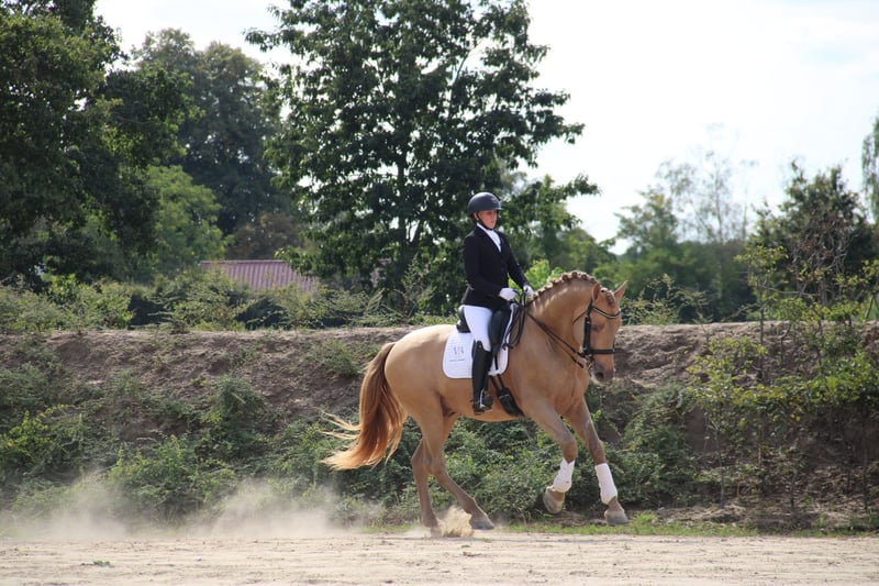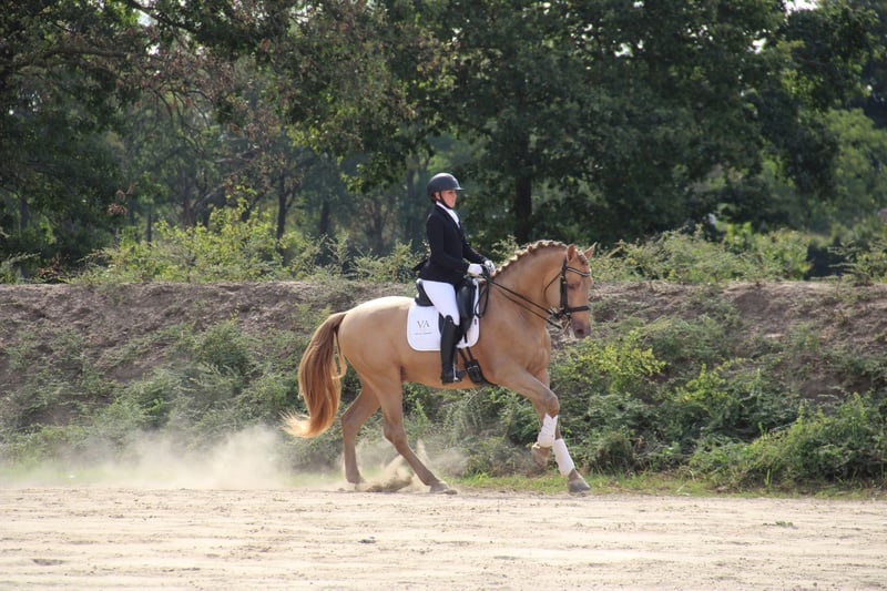 È con grande tristezza che stiamo pensando di trovare una nuova casa per Maestrante. La decisione non è stata facile, ma diverse ragioni ci spingono in questa direzione. Abbiamo già diverse puledre da lui, diverse fattrici gravide da lui per il 2025, oltre a una riserva di seme congelato. Inoltre, Maestrante è un cavallo che ama lavorare e ricevere attenzioni, esigenze che a volte fatico a soddisfare per mancanza di tempo. Merita di essere al centro dell'attenzione di qualcuno che possa prendersi cura di lui in modo completo, mentre a noi potrebbe permettere di scoprire un'altra gemma rara. Non nascondo che sto cercando un successore d'eccezione per lui". Maestrante, che misura 1,71 m, trasmette ai suoi puledri una struttura ossea robusta e una grande autonomia. Oltre alle qualità fisiche e morfologiche che lo predispongono al dressage, si distingue per il suo temperamento facile e generoso in ogni circostanza. Ha partecipato due volte al Concorso Centrale Europeo ANCCE, ottenendo una medaglia di bronzo nel 2022 nella categoria stalloni di età superiore ai 7 anni e vincendo una medaglia d'oro nel 2023 per la funzionalità (prova a cavallo per stalloni di età superiore ai 7 anni). Maestrante è stato testato geneticamente per il suo colore, con un risultato di ggEEAaPrlPrl, doppio perla su base baia. È stato sottoposto a radiografia a 2 e 5 anni ed è esente da problemi di OCD e navicolare. È stato anche testato per l'assenza di Piro. Nota bene: Maestrante non deve assolutamente partire e potrebbe rimanere con noi. VanouAll Dressage si sta prendendo cura di lui in modo eccellente e posso continuare a utilizzarlo nel nostro programma di allevamento. Pertanto, il prezzo di Maestrante riflette la qualità di questo cavallo.