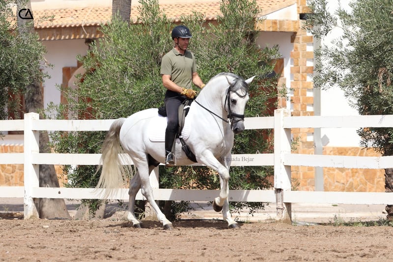 Karnaval de Vademar is a beauty gray stallion born in 2014, with a very good conformation. His character is super docile and trusting with people, making handling him easy. He has a good dressage base, and good skills to continue improving. Karnaval is the son of Fer Soñador, in his bloodline we can find important exemplars such as Mañoso II and Pampero V. His dam is Estrella JV, daughter of Envoy VIII and Gelida III.