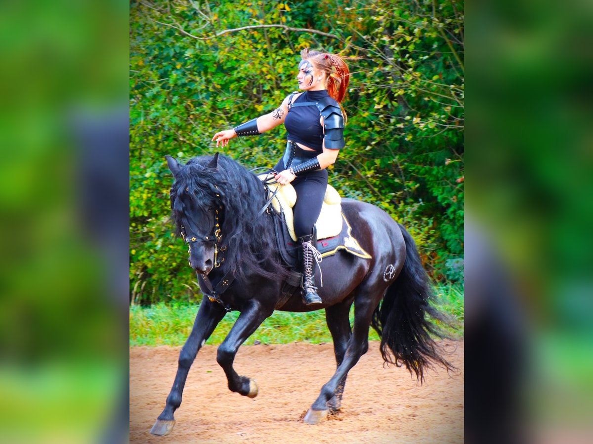 Wir verkaufen Rapphengst aus 2014. geeignet für Showreiten, Barock und Zucht. Schmiede und verladefromm. Koppel und Boxenhaltung gewöhnt. Das Pferd ist hochsensibel und nicht für Anfänger geeignet. Piaffe, Passage , spanischer Schritt alle Seitengänge. TÜV aus 2025.