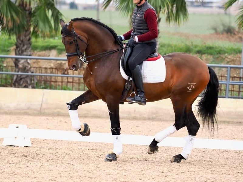 This impressive PRE horse, born in 2013 and standing at 1.67 m, stands out for its energy and spirited character, making it ideal for experienced riders seeking a dynamic and versatile companion. Ridden at a advanced level, he performs flying changes, an elegant piaffe, and showcases expansive and graceful trot extensions. This horse combines strength and vitality, offering an exciting experience for those who enjoy the challenge and beauty of working with an athletic and energetic horse. Perfect for those who value a connection with a lively horse, this Spanish horse promises to be a loyal partner both in the arena and in sports leisure activities.