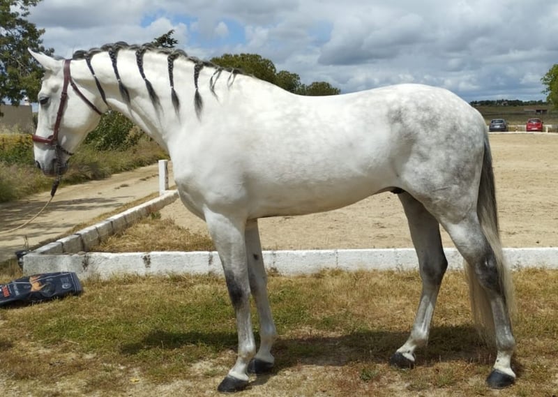 Se vende este impresionante semental PRE nacido en 2013. Este encantador semental gris manzana no solo impresiona por su aspecto, sino también por su excelente entrenamiento en doma clásica. Actualmente compite en el nivel L/M y también domina el piaffe y el paso español. Integrido es muy fácil de montar y fino en las ayudas - un caballo que da al jinete mucho placer bajo la silla. También posee tres aires básicos excelentes para la doma clásica. Su temperamento equilibrado y sus ganas de aprender lo convierten en un compañero fiable, tanto para el jinete de ocio ambicioso como para el deporte de competición. El semental siempre está motivado y dispuesto a rendir, lo que le convierte en una auténtica joya en la pista de doma. Póngase en contacto con nosotros directamente para obtener más información. Ubicación: España - se puede organizar el transporte a cualquier parte del mundo