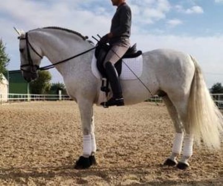 A school teacher for the whole family. Today we present to you an exceptional horse who has been the perfect companion for an entire family for years. This experienced master was the ideal partner for the youngest in the family, who competed with him in dressage competitions last year. Additionally, his mother, a novice equestrian, also enjoyed elegant rides during religious festivals, fully trusting her horse. However, the family is going through personal circumstances that prevent them from continuing to care for their beloved horse, and they have made the painful decision to sell him, leaving him at a price well below his value. The horse is very well trained and knows how to perform all lateral movements at three paces, the extended trot, the counter canter, canter pirouettes, the passage, piaffer, the Spanish walk and does flying changes to the canter very easily. In addition, he is accustomed to being ridden both with an English saddle and a snaffle and with a vaquera saddle and a bit, which demonstrates his versatility and ease in adapting to different riding styles. This is an extraordinary opportunity to welcome into your home a horse who is a true “all-rounder”, capable of adapting to all situations and bringing joy to horse riders of all levels. If you feel that this fantastic horse has a place in your equestrian family, don't miss this opportunity and contact us to come see him in person!
