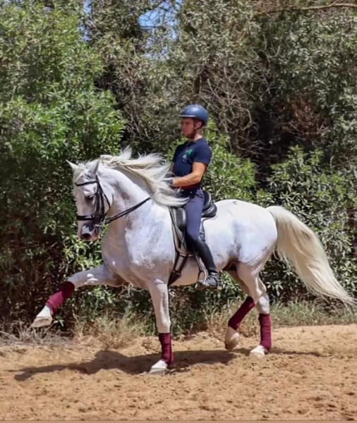 RELAMIDO III è uno stallone PRE di 16 anni, figlio di UTRERANO VII (stallone d'élite e padre di FUEGO DE CARDENAS) e RELAMIDA II. Relamido è un cavallo con esperienza agonistica dall'età di 5 anni e ha attraversato tutte le categorie del dressage fino al GP, categoria in cui ha gareggiato dal 2018 fino al 2022, anno in cui ha iniziato a gareggiare nella categoria Young Riders fino a quest'anno in cui ha debuttato nella categoria GP U25. Ha gareggiato in tutti i tipi di concorsi in tutta la Spagna, in cui spiccano le sue molteplici partecipazioni al SICAB (Campionato Mondiale del Cavallo PRE). Nella sua ultima partecipazione al SICAB, è arrivato secondo nella categoria Young Riders. Relamido è un cavallo dalle eccezionali andature naturali: un trotto ampio, un canter potente, lento e cadenzato, oltre naturalmente al suo grande talento nell'eseguire andature da Gran Premio come il passaggio, il piaffe o la piroetta. Oltre al suo talento, Relamido ha un buon carattere, sempre disposto a lavorare e una grande forza, caratteristiche che lo rendono un cavallo ideale per un cavaliere esperto in cerca di divertimento o per un giovane cavaliere che vuole iniziare la sua carriera agonistica nella disciplina del dressage. Il prezzo del cavallo da ritirare presso la nostra scuderia di Los Barrios, in Spagna, è di 80.000€ F.O.T + IVA e, se lo si desidera, può essere sottoposto alle consuete visite veterinarie e ai test.