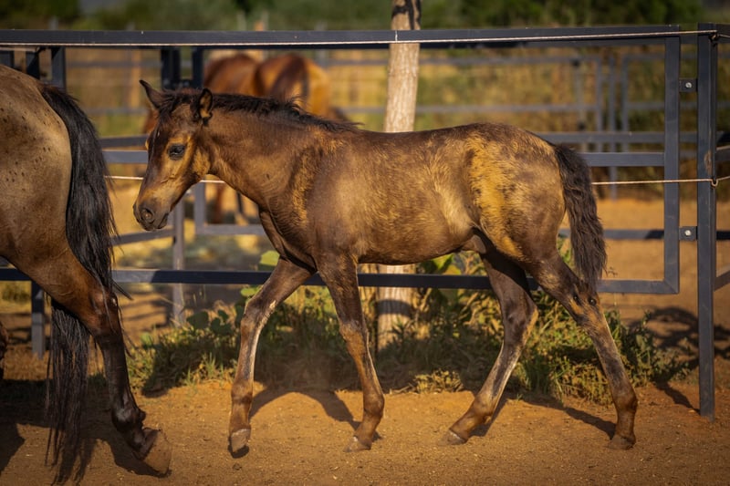 Rasse: PRE Typ: Barockpferd Geschlecht: Hengst Alter: 7 Monate Farbe: Smokey Black mit Pearl-Gen Hauptdisziplin: Barock, Freizeit Weitere Disziplinen: Dressur, Working Equitation Zuchtverband: Optional mit PRE-Papieren (ANCCE) oder ohne Weitere Merkmale: sehr barock gebaut neugierig & menschenbezogen elegante, kraftvolle Gänge aktuell roh gesund, klar im Kopf Beschreibung Lucerus ist ein außergewöhnliches PRE-Fohlen mit seltenem Farbgen – ein Smokey-Black-Hengst mit Pearl-Gen, das ihm einen faszinierenden, warmen Schimmer verleiht. Er wurde dieses Jahr geboren und ist jetzt 7 Monate jung. Lucerus zeigt sich täglich neugierig, mutig und offen im Umgang. Er sucht aktiv den Kontakt zum Menschen, lernt schnell und beobachtet aufmerksam seine Umgebung. Sein barocker Körperbau kombiniert Kraft mit harmonischen Proportionen, und seine Bewegungen sind für sein Alter bereits beeindruckend: schwebender Trab, energischer Galopp und ein sehr guter Takt. In der Herde ist er freundlich, verspielt und sozial. Stromzaun kennt er selbstverständlich. Lucerus kann mit vollständigen PRE-Papieren ausziehen – oder auf Wunsch ohne, je nach zukünftiger Nutzung und Budget. Ein ideales Fohlen für Liebhaber barocker Linien, Züchter seltener Farbgenetik oder alle, die sich ein außergewöhnlich typvolles Jungpferd wünschen. Mehr Informationen und Videos gerne auf Anfrage!