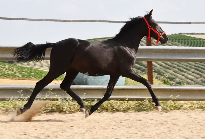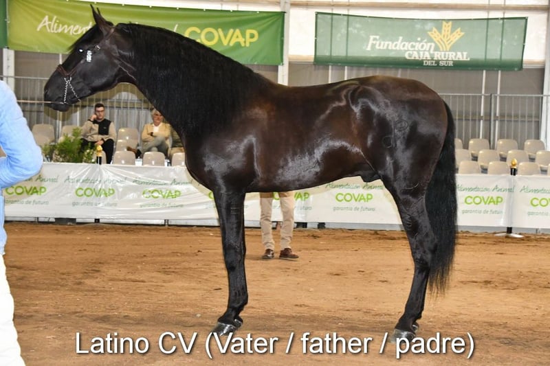 lieber Charakter, roh, steht mit anderen Jungpferden draußen, barock, groß, gute Bewegungen und Abstammung, Abstammung: Valdeolivas, Escalera, Francisco Lazo, Francisco Santiago, Opa Cokan und Uropa Ermitaño III sind qualifiziert www.elegante-andalusier.com