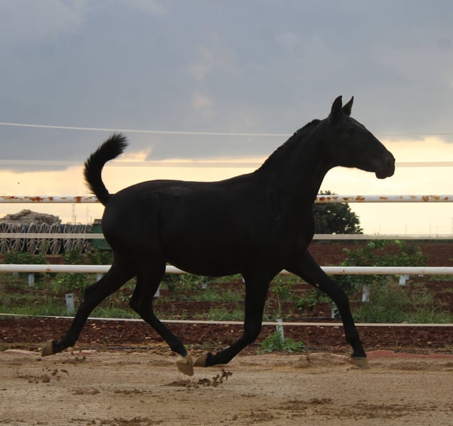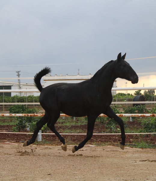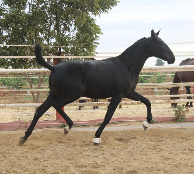 Potro negro muy movido, con mucha nobleza.