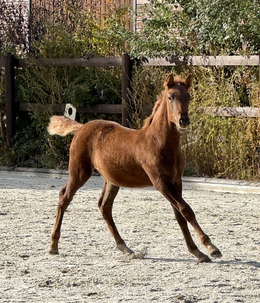 Our Rojo has a very good conformation; his movements are elegant and light as a dancer. He enchants with his gentle and trusting nature and is very likeable. Rojo masters the basics of foal training effortlessly. He comes from a very interesting lineage: on his father's side, the famous elite line of Spain, Crisonto GG-Cacique IX-Ermitano III, and on his mother's side, from elite breeding combined with old lines. This is also reflected in his beautiful movement. One can hardly wait to work with him. He is naturally endowed with swing and collection. Rojo has been healthy and lively since birth and integrates well into the herd and among the foals. For Rojo, as for all our horses, we primarily wish for a kind person with a sense of responsibility who treats themselves and the horse with care and patience. Our horses are completely unspoiled and have only had positive experiences.