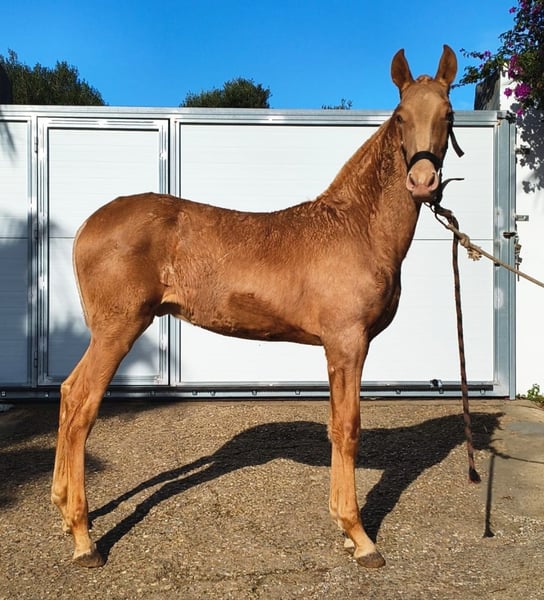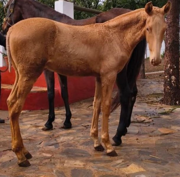 Unikalny okaz przyciągający uwagę szuka nowego domu. Urodzony w maju 2025 roku, ma około 163 cm wzrostu. Ojcem jest dwupearlowy ogier PRE, a matką brązowa klacz nosząca gen PRL (nie jest zarejestrowana w PRE). W związku z tym, młody koń otrzyma paszport, ale nie dokumenty Ancce. Nie tylko jego wygląd wyróżnia go spośród innych, ale także jego charakter. Jest niezwykle przywiązany do człowieka i bardzo chętnie się przytula. Jest całkowicie otwarty na różne dyscypliny jeździeckie. Jeśli szukasz czegoś wyjątkowego, ten koń jest właśnie dla Ciebie. Dalsze zdjęcia i filmy będą wkrótce dostępne.