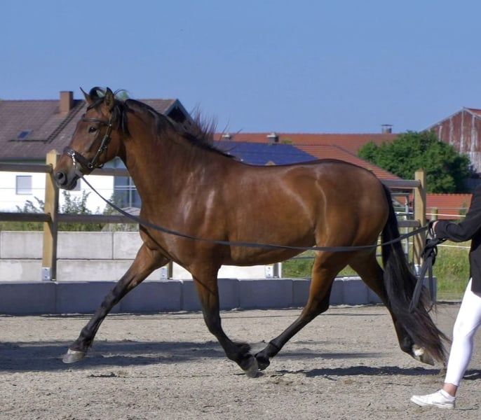 Du bist auf der Suche nach einem PRE Fohlen, dass keine Wünsche offen lässt? Unser Adonis, kurz auch Donni genannt, kann sowohl zum treuen Freizeitpartner aber auch zum sportlichen Dressurspanier werden. Er besticht durch seine menschenbezogene und neugierige Art, sowie durch die raumgreifenden Gänge, die er von seinen Eltern vererbt bekommen hat. Adonis wurde im schönen Niederbayern geboren und hat sein erstes Lebensjahr in einem kleinen Herdenverband, gemeinsam mit seiner Mutter verbracht. Ab April zieht er in einen Offenstall mit gleichaltrigen Hengsten in der Nähe von Passau. Dort kann man ihn auch gerne Kennenlernen. Er hat die Sonderfarbeintragung „bayo“ (buckskin) im Zuchtbuch der Ancce und ist somit auch für die Zucht sehr interessant. Auch das korrekte Exterieur sowie der liebe und aufgeschlossene Charakter sprechen dafür. Im Umgang ist er, abgesehen von der kindlichen Verspieltheit, ein absoluter Schatz und schnell lernend. Somit kann er natürlich das Fohlen ABC in und auswendig ;) Adonis ist Tetanus und Influenza grundimmunisiert, sowie regelmässig entwurmt. Beide Elternteile können natürlich auf Wunsch besichtigt werden (und sind auch auf den letzten beiden Bildern zu sehen). Unser Donni würde sich freuen dich kennenlernen zu dürfen :)