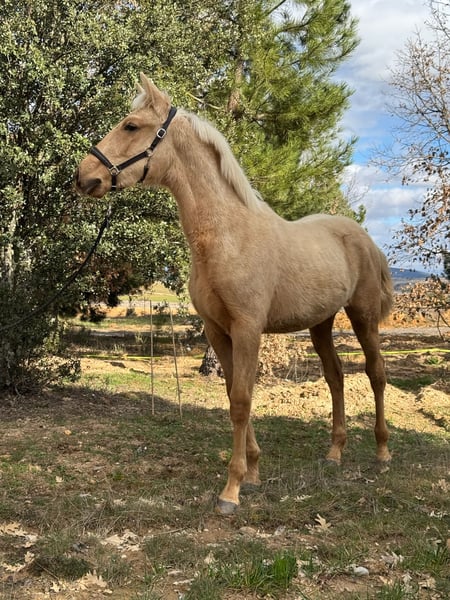 Talos ist ein wunderschönes Palomino Hengstfohlen der Pura Raza Española (PRE) mit einer beeindruckenden goldenen Farbe und sehr freundlichem Charakter. Er stammt aus bekannten Blutlinien wie Yeguada La Escalera und Paco Martí, die für hochwertige PRE-Pferde bekannt sind. Er wurde mit viel Liebe und täglichem Menschenkontakt aufgezogen, wodurch er ein sehr menschenbezogenes und vertrauensvolles Fohlen ist. Talos ist für sein Alter sehr gut im Umgang: - lässt sich anbinden - gibt alle vier Hufe - an tägliches Handling gewöhnt Er ist ruhig, freundlich und unkompliziert im Umgang. Mit seiner goldenen Farbe, seinem tollen Charakter und seiner guten Abstammung ist Talos ein sehr vielversprechendes junges Pferd für die Zukunft.