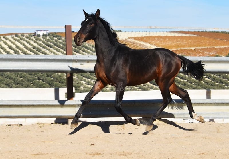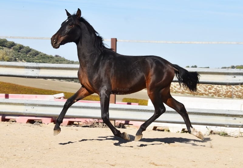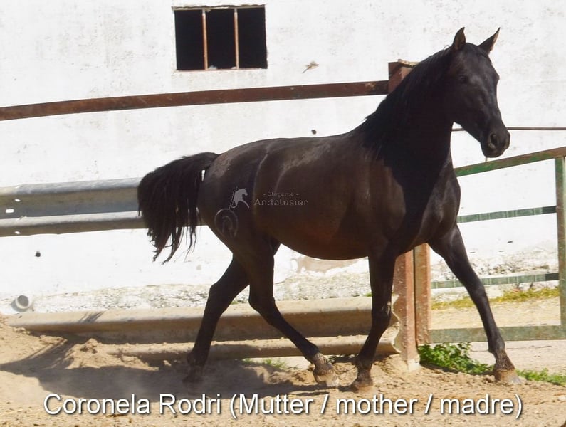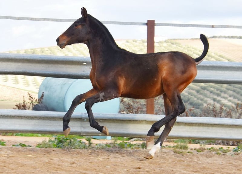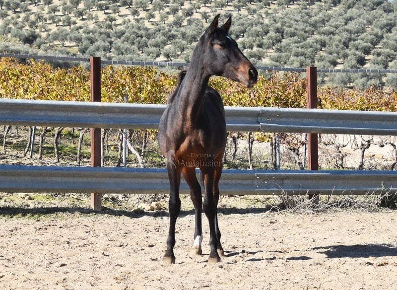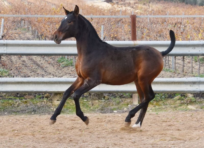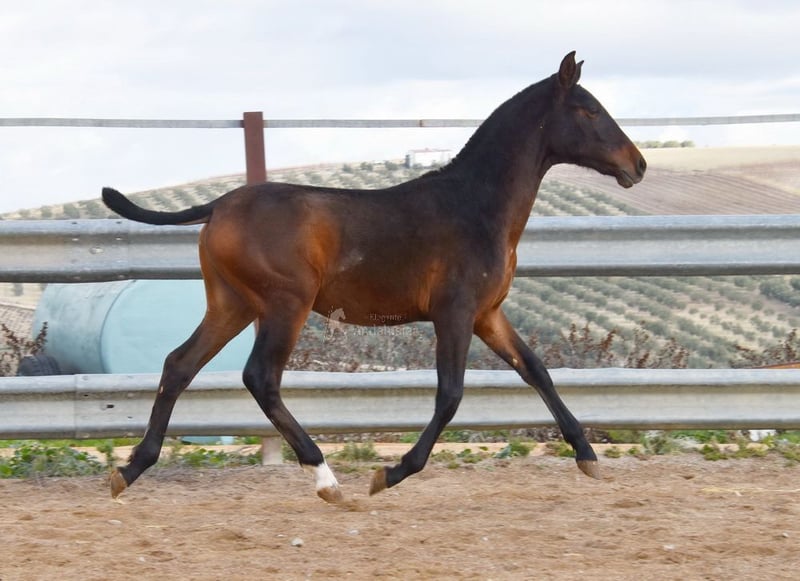 Lief karakter, ruw, staat samen met andere veulens buiten, groot, goede bewegingen en afstamming. Afstamming: Alquilino Moya, Guardiola, Soto Gil, Escalera. Overgrootvader Barquito is gekwalificeerd. www.elegante-andalusier.com