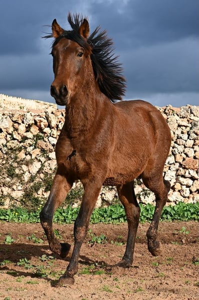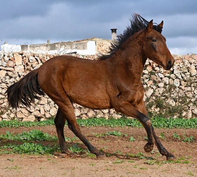 Noch ist dieser 2024 geborene PRE Hengst (Andalusier mit Rassenachweis der ANCCE), ein süßer Schatz. Aber ers gibt schon Momente, wo er sich stolz in der Bewegung präsentiert und zeigt, was er für ein schicker Kerl wird ;) Väterlicherseits hat er viel Escalera-Blut in der Abstammung und daher kommt bestimmt auch sein menschenfreundlicher, offener Charakter. Denn immer wieder kam er neugierig zu mir im Freilauf, um kurz Hallo zu sagen. Der Züchter legt großen Wert darauf, dass die Hengste bis mindestens 3 Jahre in der Hengstherde aufwachsen. So kommt es, dass er bei der Regensaison auf Menorca plüschiges Fell und etwas Panier im Fell hat, aber nur ein Indiz auf das natürliche Aufwachsen ;) Der Youngster ist sehr neugierig und aufgeschlossen und hat keinerlei Hengstmanieren, wobei er noch komplett roh ist. Er hat eine schöne Bewegung und sein zu erwartendes Endmaß wird leicht über 160cm liegen. Für all jene die keinen Hengst halten können, besteht natürlich auch die Option der Kastration vor Ort. Sein Standort ist Menorca. Videos und Abstammung gerne auf Anfrage. Gerne organisiere ich vor Ort eine AKU, Beritt, Kastration, Transport oder auch ihre Reise, sollten Sie persönlich zum Anschauen kommen. Details dazu gerne auf meiner Seite oder im Gespräch. Saludos aus Spanien