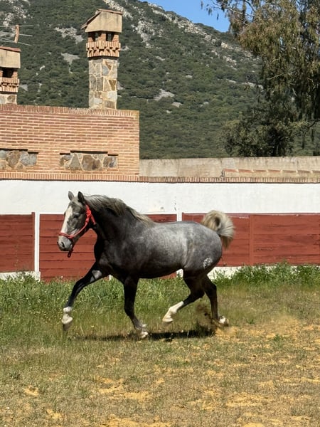 Hochwertiges zweijähriges PRE-Fohlen, Sohn von FerBago, mehrfacher spanischer Meister, und Bruder von Fer Bonachón. Die Mutter ist geprüft und JRR, Tochter von Digital, ebenfalls spanischer Meister. Das Fohlen ist aufgrund seiner hervorragenden Morphologie ideal für den Turniereinsatz.