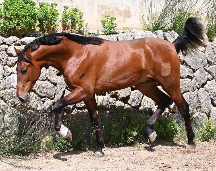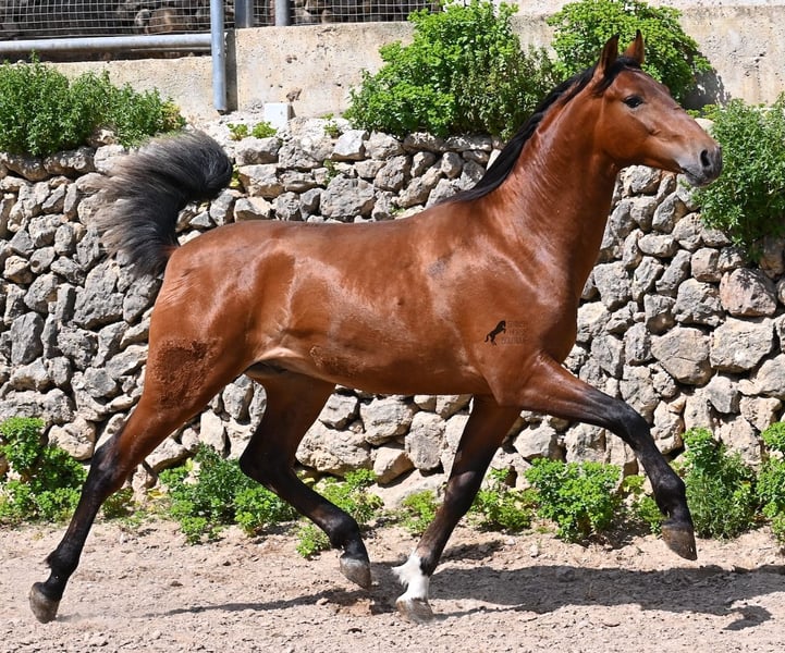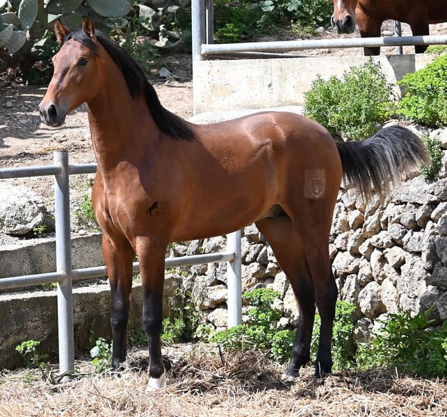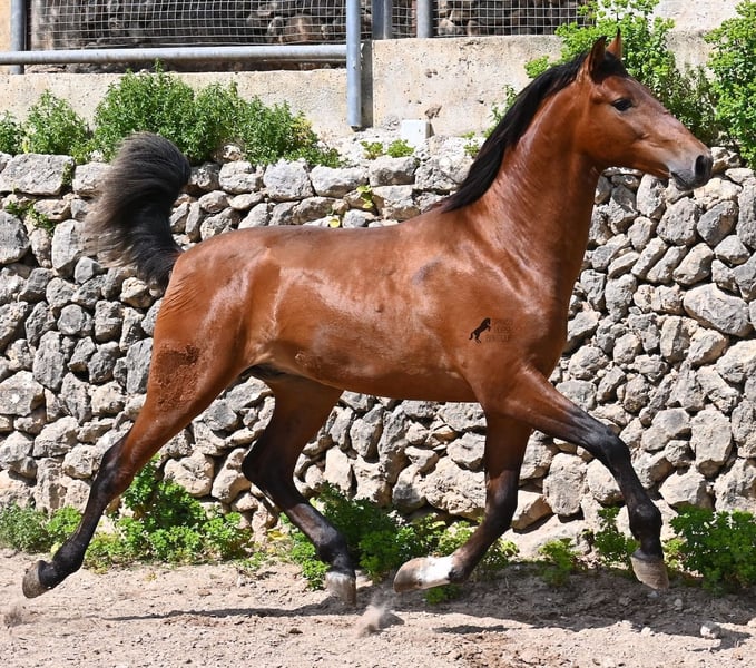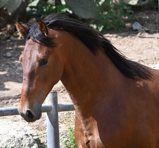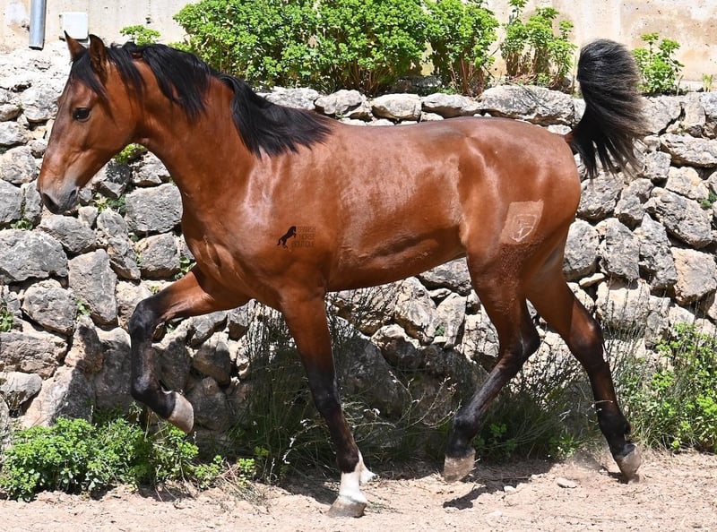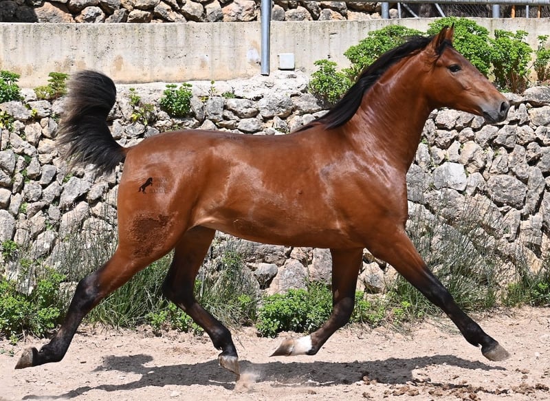 Dieser 2024 geborene, reinrassige PRE (Andalusier mit Rassenachweis der ANCCE), ist in vielerlei Hinsicht, ein hochkarätiger Nachwuchshengst. Sein Vater ist mehrfach SICAB qualifiziert (Weltmeisterschaft der Morfologie) und ein vielversprechendes Pferd in der Dressur. Der Youngster ist ein Enkel von YUCATAN DE RAMOS, der bekanntlich der Sohn des ELITE Hengstes UTRERANO VII ist. Väterlicherseits ist der Bub ein Abkömmling des Mejorante Hengstes BELMONTE XXVII und somit ist der ELITE Hengst EDUCADO X ebenso in der Abstammung. Die Creme de la Creme an Vorfahren, zeigt sich in seinen Qualitäten, sowohl in den hervorragenden Gangarten, sowie dem freundlichen Charakter und rassetypischen Aussehen. Da seine nächsten Vorfahren alle groß sind (über 170cm), wird auch er mit schon aktuell 165cm ein sehr großer Rassevertreter, wie es der moderne Typ des PRE wünscht. Er ist altersbedingt nur halfterführig und darf ansonsten sein Leben in altersgleicher Gesellschaft genießen- das sieht man auch an manchen Kindergartenwunden ;) Sein glänzendes Braun mit der schwarzen Mähne und weißen Söckchen, gibt ihm einen schönen Look und was besonders ist- es sieht so aus, als würde der Schweif noch weiß werden! Er ist gut sozialisiert und hat auch im Freilauf erstmal den Nachbarn hallo gesagt, noch mit unterwürfigem Zähneklappern der Fohlen, also kein Hengstverhalten. Sein Preis ist für die Qualität mehr als fair und er wird sowohl für die Dressur, Show, Working Equitation und Zucht interessant. Für all jene, die keinen Hengst halten können, ist selbstverständlich die Kastration vor Ort möglich. Aktuell steht er auf Mallorca! Videos und Abstammung gerne auf Anfrage. Gerne organisiere ich vor Ort eine AKU, Kastration, Beritt, Transport oder auch ihre Reise, sollten Sie persönlich zum Anschauen kommen. Details dazu gerne auf meiner Seite oder im Gespräch. Saludos aus Spanien