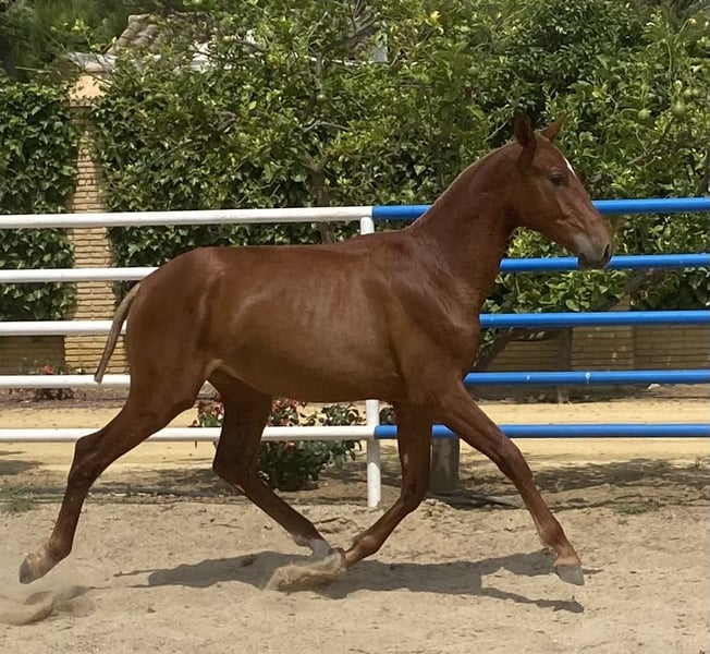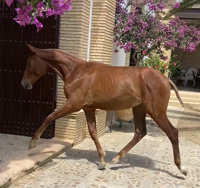 **For Sale: PRE Stallion!** Unique opportunity for horse riding enthusiasts! We offer for sale an impressive stallion of Pure Spanish Breed (PRE), born in 2024. This elegant chestnut stands out with his imposing height of 167 cm and his magnificent appearance. With a noble and balanced temperament, this horse is in the process of classical training, showing great potential and willingness to learn. Ideal for those seeking a high-level companion in the world of equestrianism. Don't miss the chance to acquire this magnificent specimen. For more information and to arrange a visit, feel free to contact us. We look forward to hearing from you!