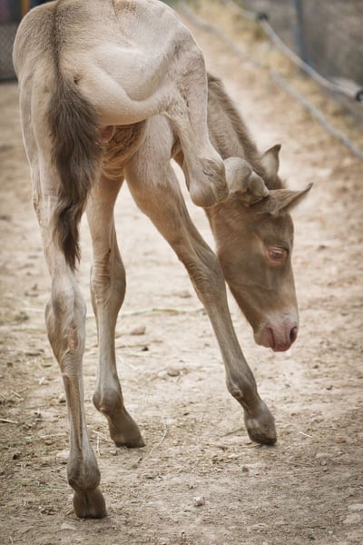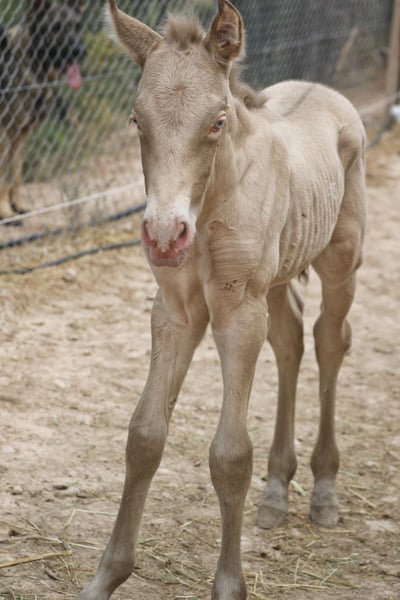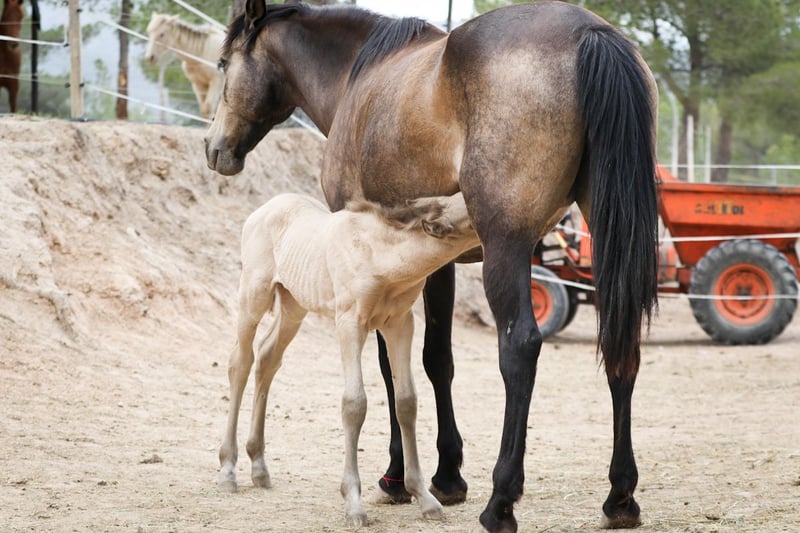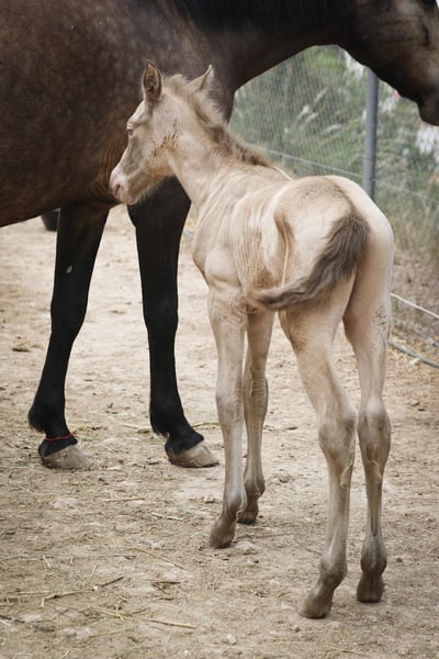 Foal born 16.04.2024 available for reserve. Special colour Buckskin Pearl (Bayo Perla CrPrl) He will have his complete registration at ANCCE. His dam is Alhucena and his sire is Afortunado XL. He will be weaned in October 2024.