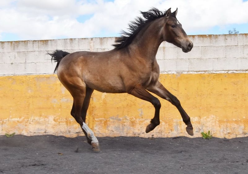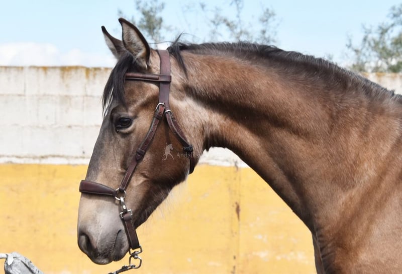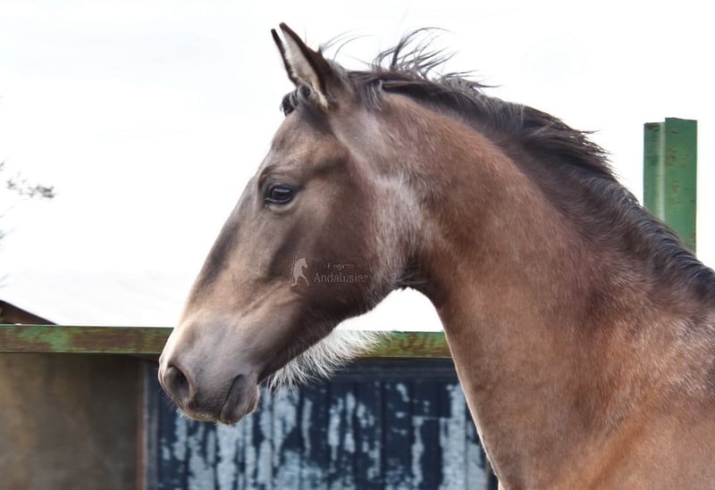 gentle character, untrained, stands outside with other young stallions, good movements and lineage, special color, PRE dun with papers, lineage: Alfredo Gala, Pablo Perez Jimenez, Miura, los Retamales, has several qualified ancestors www.elegante-andalusier.com