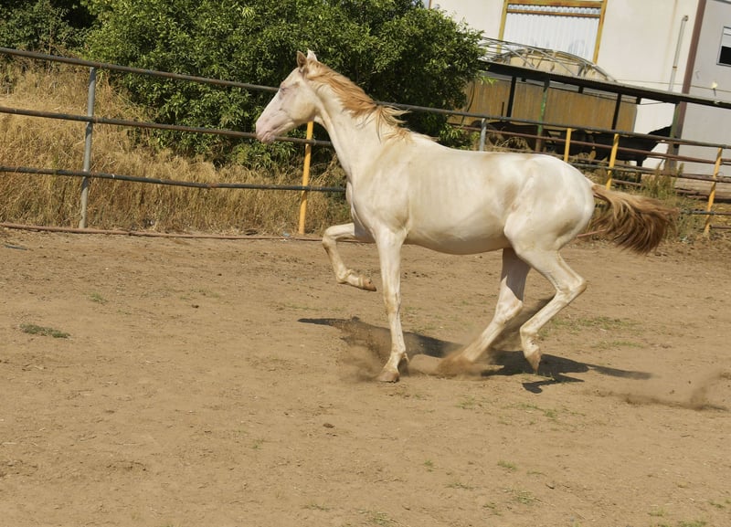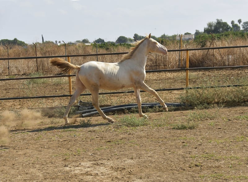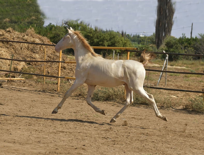 Hello friends! Today we have something special for you. Pura Raza Española . Full papers Perlino. He's turning two years old beginning next year. He stands out not only for its speacial and attractive color but also for it's movements. He's being raised in a big farm with other horses . Good value for money . Transport can be easily organised. More information send us private message or contact us via WhatsApp +34 620247441