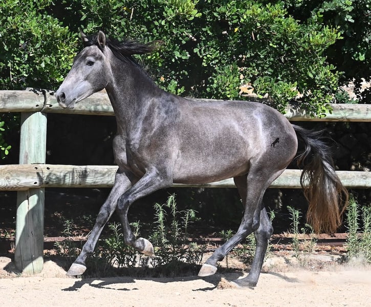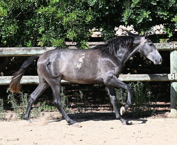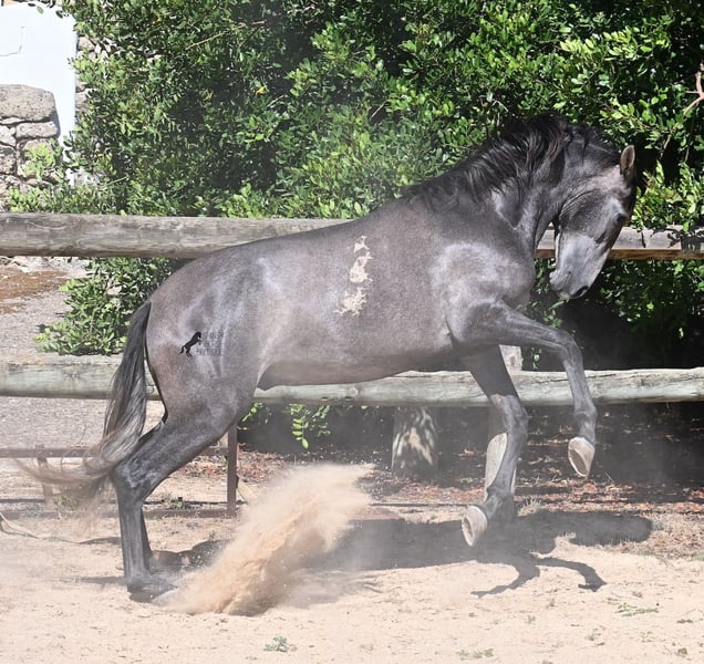 Dieser im Frühjahr 2023 geborene PRE Hengst (Andalusier mit Rassenachweis der ANCCE), ist noch ein richtiger Jüngling. Da er sehr viel Cartujano-Blut (Kartäuser) in sich hat, ist er ein Spätentwickler, denn diese ehemaligen Pferde der Könige, lassen sich Zeit, bis sie richtig stolze und imposante Pferde werden. Und Zeit wird ihm auch gegeben, seit nur wenigen Wochen wurde er von seinem Hengskumpel getrennt und steht nun einer großen Paddockbox. 2x die Woche wird schonend Bodenarbeit mit ihm gemacht, nach Horsemanship, um ihm eine gute Basis zu geben, für sein späteres Leben als Reit- oder Fahrpferd. Er gibt schon die Hufe, lässt sich brav putzen und bei der Bodenarbeit reagiert er schon fein auf Körpersprache und geht fein ein aufs Rückwärtsrichten. Aktuell misst er 155cm, wobei noch einige Cm nachkommen- wie gesagt, ein Spätentwickler ;) Die Kastration vor Ort wäre möglich, sofern Hengsthaltung keine Option ist. Sein Standort ist Menorca. Videos und Abstammung gerne auf Anfrage. Gerne organisiere ich vor Ort eine AKU, Kastration, Transport oder auch ihre Reise, sollten Sie persönlich zum Anschauen kommen. Details dazu gerne auf meiner Seite oder im Gespräch.