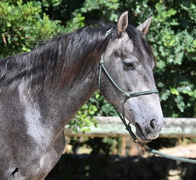 Este semental PRE (Andaluz con certificado de raza de la ANCCE), nacido en primavera de 2023, es todavía un verdadero jovencito. Debido a que tiene mucha sangre Cartujano, es un desarrollador tardío, ya que estos antiguos caballos de los reyes se toman su tiempo para convertirse en caballos orgullosos e imponentes. Y se le está dando tiempo, ya que hace solo unas semanas fue separado de su compañero semental y ahora está en un gran box de paddock. Dos veces a la semana se le realiza trabajo en el suelo de manera suave, siguiendo el método de Horsemanship, para darle una buena base para su futura vida como caballo de monta o de tiro. Ya da las patas, se deja cepillar y en el trabajo en el suelo responde bien al lenguaje corporal y se mueve con suavidad hacia atrás. Actualmente mide 155 cm, aunque aún le quedan algunos centímetros por crecer, como se mencionó, es un desarrollador tardío ;) La castración en el lugar sería posible, siempre que la cría del semental no sea una opción. Su ubicación es Menorca. Videos y ascendencia disponibles a petición. Con gusto organizo una revisión veterinaria, castración, transporte o también su viaje, en caso de que desee venir a verlo personalmente. Para más detalles, no dude en consultar mi página o en hablar conmigo.