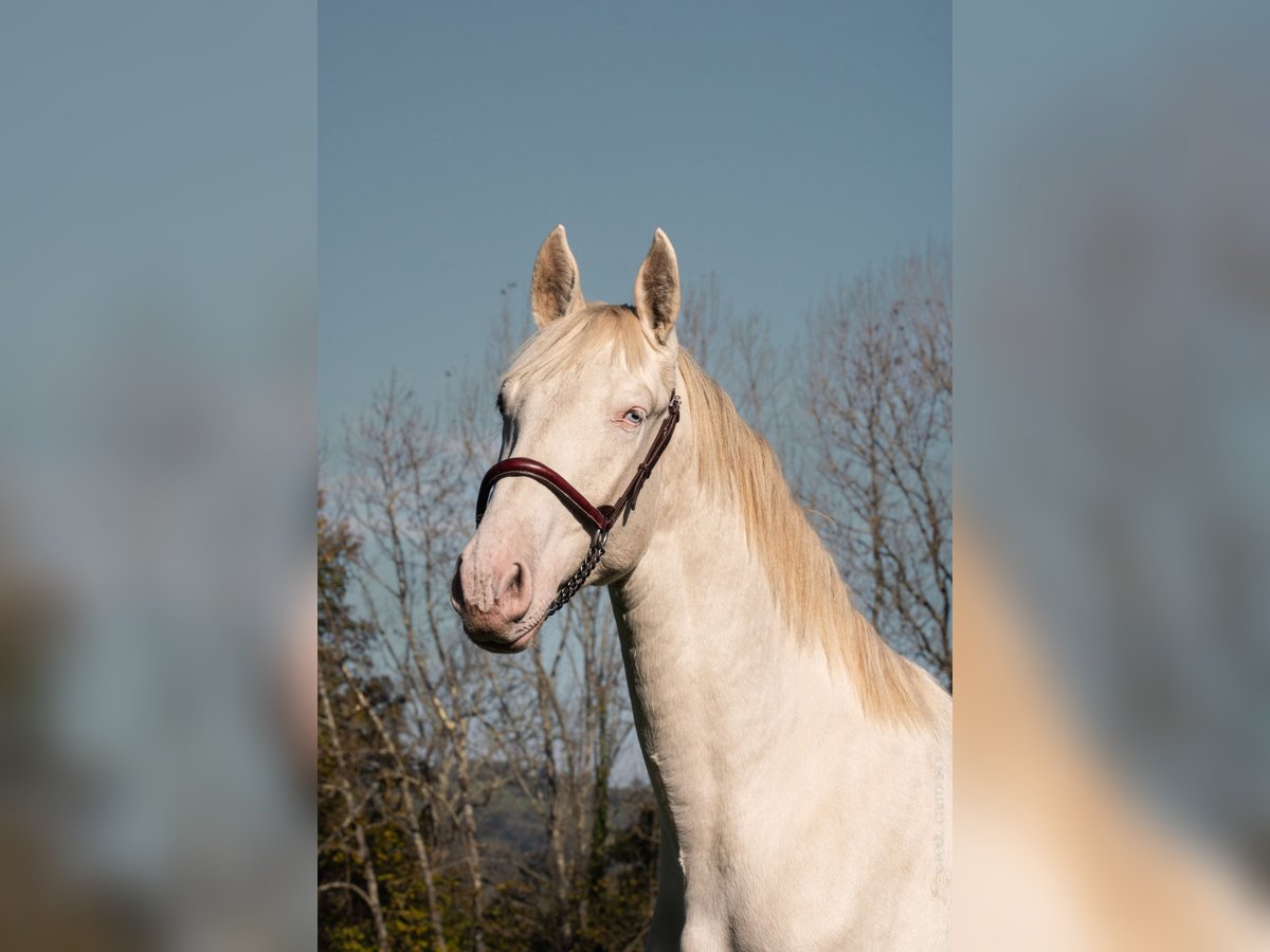 We present to you this young perlino stallion, a future breeding stallion with exceptional qualities. His rare and precious coat, carrying cream genes, ensures the transmission of diluted colors (isabella, palomino, perlino, cremello, etc.) to his future offspring, making him a true treasure to enrich your breeding program. Highlights of Orgulloso: ⚜️ Unique genetics: With his perlino coat, this young horse is an ideal choice to bring color and originality to your foals. ⚜️ Exemplary character: Calm, curious, and easy to handle, he displays a reliable and balanced temperament, qualities he will pass on to his descendants. ⚜️ Prestigious lineage: Coming from lines renowned for their beauty and performance, he has everything it takes to become a sought-after and successful breeding stallion. This young horse is a rare opportunity for breeders looking to add real value to their program: elegance, coat diversity, and an exceptional temperament. Make a future-oriented choice for your breeding! For more information or to arrange a visit, please do not hesitate to contact us. --- ALEGRIA – Find the horse of your dreams and create a unique relationship based on trust and connection. At Alegria, we understand that purchasing a horse is much more than just a transaction. It’s about finding a lifelong partner with whom you will build a strong and fulfilling relationship. We offer expert support at every step, so you can make an informed choice and embark on this adventure with peace of mind. Why choose Alegria? Personalized support to guide your decision. We help you find the horse that matches your personality, expectations, and skills, ensuring that the relationship you build with him is smooth and natural. ✨ Our team of experts advises, guides, and supports you in your process to make an informed choice without haste. Horses raised in an environment conducive to their well-being. Our horses are raised in exceptional conditions, benefiting from gentle and respectful education, based on our exclusive "Complicity Relationship" method. Each horse is prepared to be a reliable, responsive, and balanced partner, ready to build a trusting relationship with you. Quality care to ensure optimal health. The well-being of our horses is paramount. They are regularly monitored by animal health experts: veterinarians, osteopaths, farriers, and dentists. This medical oversight ensures that your horse will be in top shape, ready to start this new relationship with you under the best conditions. Transparent follow-up through progress sheets. Each horse benefits from a detailed progress sheet that allows you to know his exact level, strengths, and character. This transparency gives you all the keys to choose the horse that will meet your expectations and the relationship you wish to build with him. Continuous support to succeed in this relationship. At Alegria, we believe that a lasting relationship is not improvised. That’s why we remain by your side after the purchase, with personalized follow-up to help you build a true connection with your horse. Through our in-person and online training, you will learn to better understand your horse and strengthen the foundations of your relationship. Testimonials from satisfied clients. We have supported hundreds of riders in their projects. 100% of our clients are satisfied with the support and the relationship they have been able to build with their horse. Their testimonials are the best proof of the quality of our work and the success of the relationships we foster. Find the horse that meets your expectations. Discover our selection of exceptional horses now and start imagining the relationship you will create with him. Check the progress sheets and let our expert team guide you to find the horse that meets your needs. Discover our selection of horses at www.alegriacomplicite.com and start building the relationship you dream of. Alegria – Find the horse that suits you and create a relationship based on trust and connection.