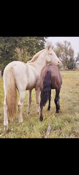 Fuego is an incredibly charming young stallion who is destined to grow into a tall and strong horse. He was born in Germany (his mother is shown in the last picture). He is very playful and gets along with everyone, often joining in all kinds of mischief. He is very affectionate and attentive to people, and he loves working with humans. Whether riding alone in the field or at home, he remains calm and steady, not easily spooked. His mane has been trimmed by himself and is growing back normally (it's low-maintenance and looks good to us). Currently, he is part of a young horse group and is enjoying his life to the fullest.