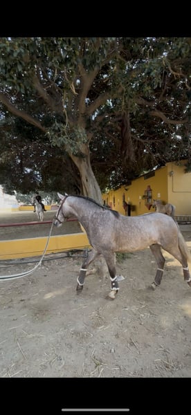 Potro español hace los 3 años en junio Nieto de utrerano vii Padre de caballos como fuego de cardenas o yucatan de ramos. Mide 1,58 Criado en el campo con mas potros hasta hace dos semanas Recortado de manos y pies Piroplasmosis negativa X-rays ok Dando cuerda a los 3 aires con cadencia y equilibrio con un cabezón de cuadra Mucha nobleza en el trato e inteligente para aprender Ya tiene la montura puesta y esperando que desarrolle físico y edad para ir montandolo. Potro ideal para seguir su doma. Posibilidad de dejar en la cuadra para seguir su doma hasta el nivel que se desee.