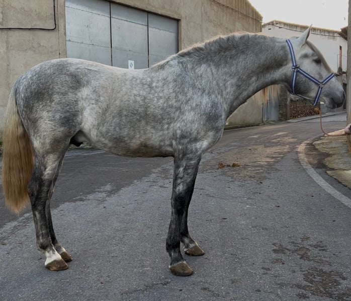 Potro Pura Raza Español. Es semental. Posibilidad de castrarlo. Mide actualmente 1,58. Está creciendo. Carácter adorable. Iniciado en doma. Muy cariñoso. Caballo ideal para un hogar.