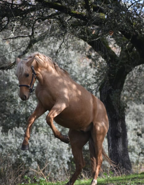 For sale: a 3-year-old Palomino stallion, exceptionally elegant, of Pure Spanish Breed (PRE). Unbroken and raised appropriately for his age, with an expected adult height of approximately 1.59 m (15.3 hh) and an outstanding pedigree. This young stallion impresses with his first-class movement, natural elegance, and expressiveness. His balance, flexibility, and aptitude for collection make him particularly suitable for Working Equitation as well as advanced dressage. In addition to his athletic qualities, he has a friendly, balanced, and very cooperative temperament. In daily handling, he is attentive, alert, and easy-going, ideal conditions for harmonious and sustainable training. His X-rays, including those of his back, are excellent with no findings, highlighting the high quality of this promising young horse. A top-quality PRE stallion with a striking color, charisma, and potential—perfect for discerning riders or trainers seeking something special. Location: Seville www.iberianpremiumhorses.com