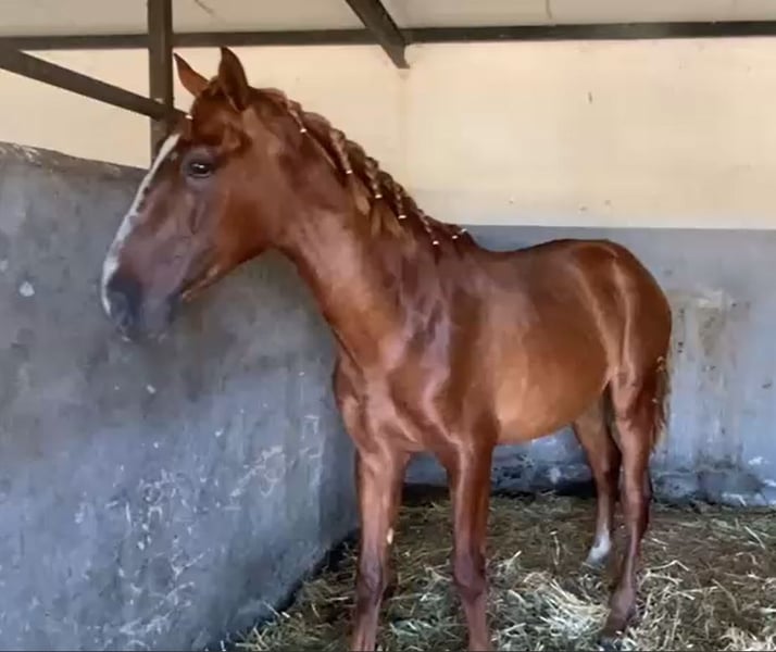 OPORTUNIDAD SE VENDE POTRO DE CONCURSO, ALAZAN, 2,6 años , con alzada 1,60, super noble lo coge un niño y cualquier persona , hijo de campeones en su sangre , se hara un gran caballo precioso por su capa alazán , muchísima raza , gran morfología , SI QUIERES UN POTRO PARA CONCURSAR O PARA PASEAR Y MONTAR CON MUCHISIMA BELLEZA Y RAZA ESTE ES TU POTRO , LLAMA AHORA ANTES DE QUE SE VENDA