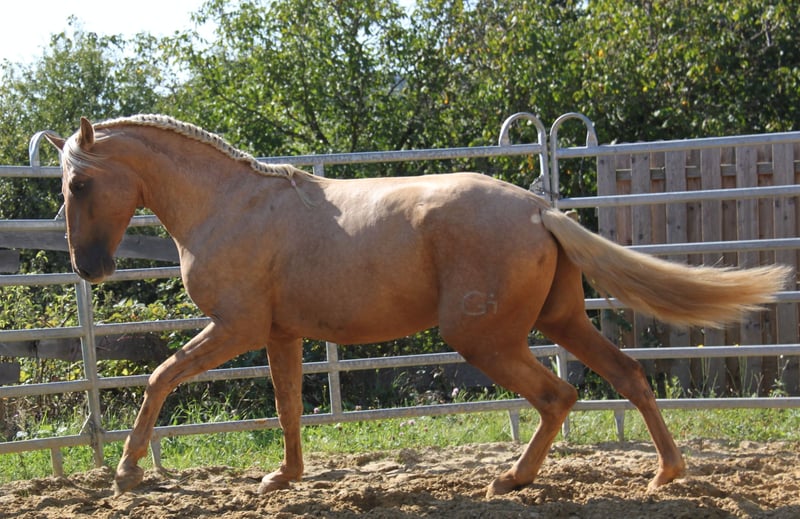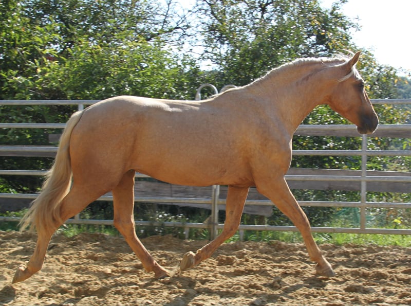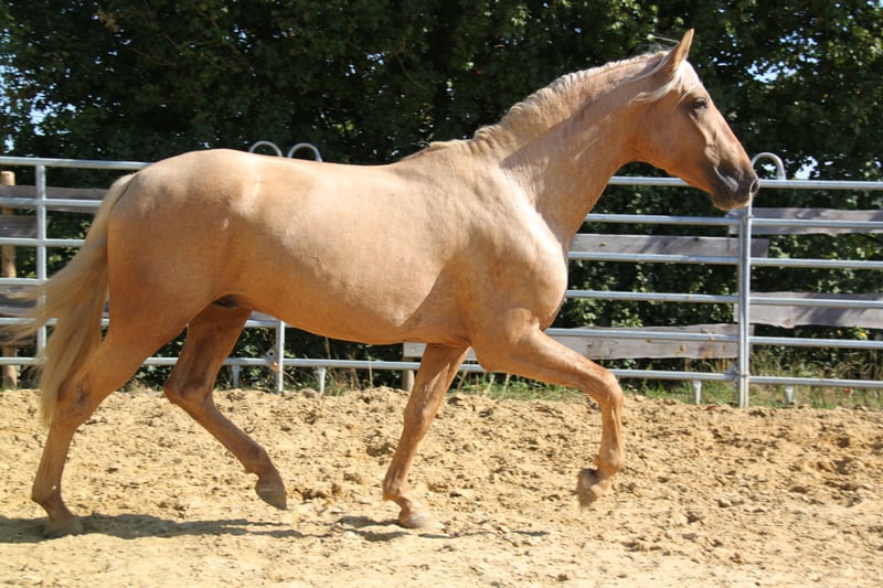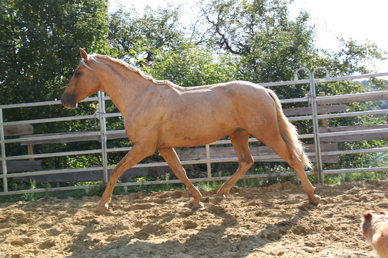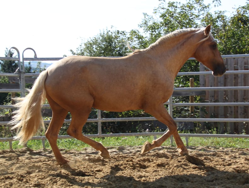 Due to a reduction in our stock, we are selling our beautiful and super sweet PRE stallion in the currently very sought-after special color Palomino. Natural is a real eye-catcher, with both great movements and a dream character. A horse to fall in love with for the whole family! Natural turned three years old on May 30, 2025, and currently stands at 1.61 m. We estimate his final height to be 1.64 m. Natural has full ANCCE papers and was approved for breeding in June 2025. The judging commission was very impressed by his wonderful, calm, and affectionate nature, which, along with his excellent conformation, earned him the rating of "very high breeding quality." Therefore, Natural is also a gem for any breeder who values not only appearance and movement but also the character of the stallion in terms of breeding. Natural is familiar with groundwork and lunging and participates very kindly and attentively. He is also accustomed to the saddle and rider weight. He always wants to please his human and quickly understands what is expected of him. Natural is very easy to handle, can be managed by children without any problems, and follows his humans calmly and fearlessly. For his age, he is remarkably confident even in new and unfamiliar situations. Whether it’s screaming babies or children, barking dogs, tractors, or combines, he is always attentive, calm, and curious, seeking contact with people. He loves children and dogs. Due to his exceptional character, he is suitable for any type of activity—whether free work, groundwork, circus tricks, working equitation, driving, or simply leisure riding—Natural will always be a loyal and reliable companion. He is currently in a pasture with two other young stallions and has constant access to a paddock with a shelter and hay. Natural is very healthy and robust. There are X-rays from December 2024 with no findings. If you are interested in this dream stallion, we look forward to serious inquiries by phone (01520 433 4848) or WhatsApp (0179 922 4436)!
