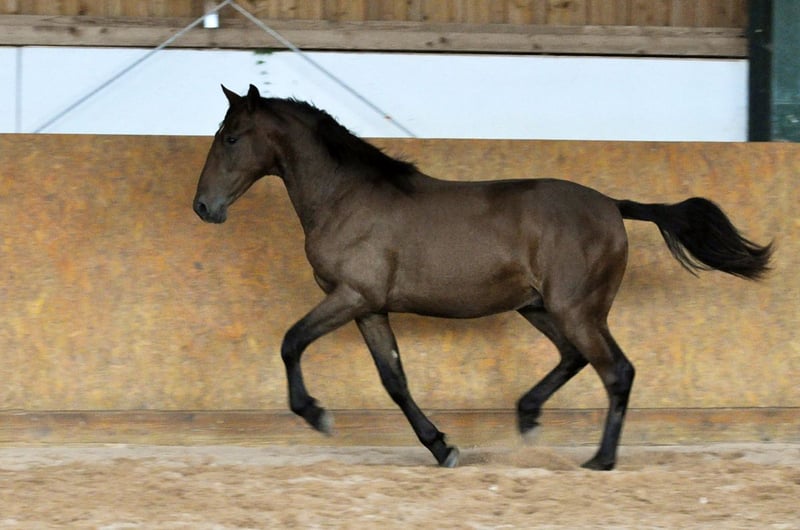 Stijlvolle jaarling hengst met een geweldige afstamming en uitstekende basisgangen te koop. Dante zal opgroeien in een kudde jonge hengsten op grote weiden en kan op de stoeterij blijven voor verdere dekking.