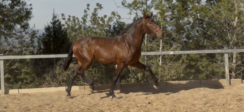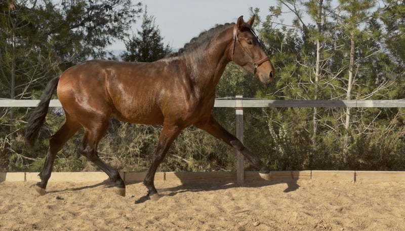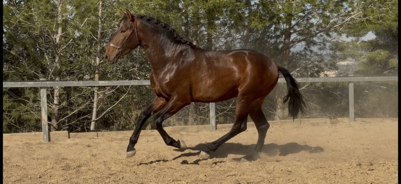DUQUE ABS Junger Pferd, reinrassiger Andalusier, geboren am 20.04.2023, kastanienfarben, zeichnet sich durch seine hervorragende Rassequalität, solide Konstitution und vielversprechende Zukunft aus. Nachweisliche Abstammung: Sohn von Faraón CCCLXXI und Enkel von Trovador IX, aus der Zucht Valdeolivas. - Aktuelle Größe: ca. 1,70 m - Sehr gute Beinstellung und Knochenbau - Starke und korrekte Körperhaltung - Seriöses, ausgeglichenes und gut entwickeltes Fohlen * Bewegungen von hoher Qualität: Großer, definierter Schritt, elastischer, weit schwingender Trab mit viel Raumgriff, ausdrucksstark, sowie ein natürlicher, ausgeglichener Galopp. Sehr edles Wesen, leicht zu reiten und mit positiver Einstellung. Derzeit in Valencia. Weitere Informationen und Videos auf Anfrage. Telefon: 635814665 / 644917689