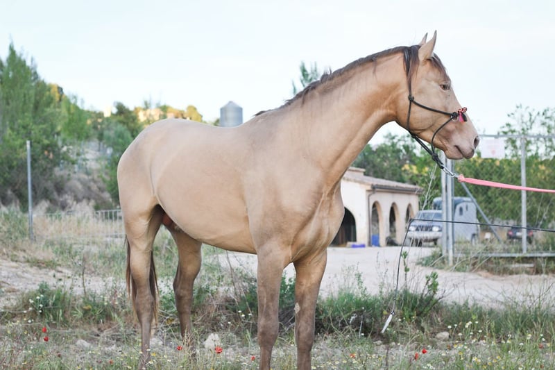 Mantecado is a colt born in August 2023 and registered with ANCCE. His dam is CAPEA XI (a buckskin mare) and his sire is an ISABELO (PrlPrl) stallion. He has inherited the cream gene from his dam and the PRL gene from his sire. He is tested and his genetic code is EEAACrPrl. He is a foal raised in family, very affectionate and close to people. He already knows the farrier, knows how to be tied, trailer training and lives in a herd where he can grow. He enjoys a diet based on high mountain hay and PAVO brand foal feed.