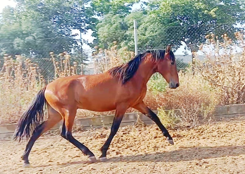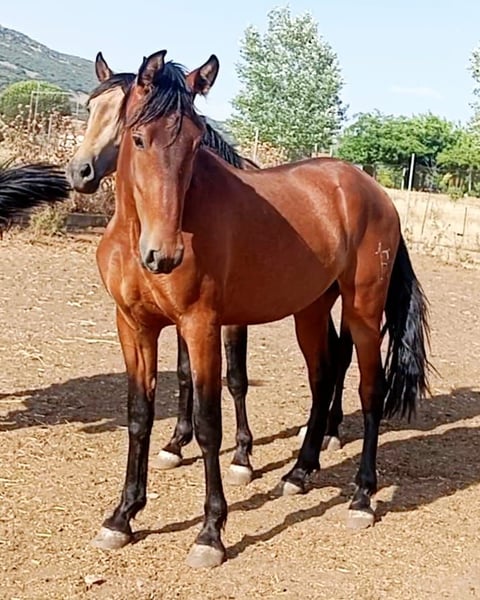 Potro PRE de 2 años - 100% líneas de sangre Escalera. Actualmente mide 163 en la cruz y debería crecer fácilmente hasta 168, ya que su padre mide 172.