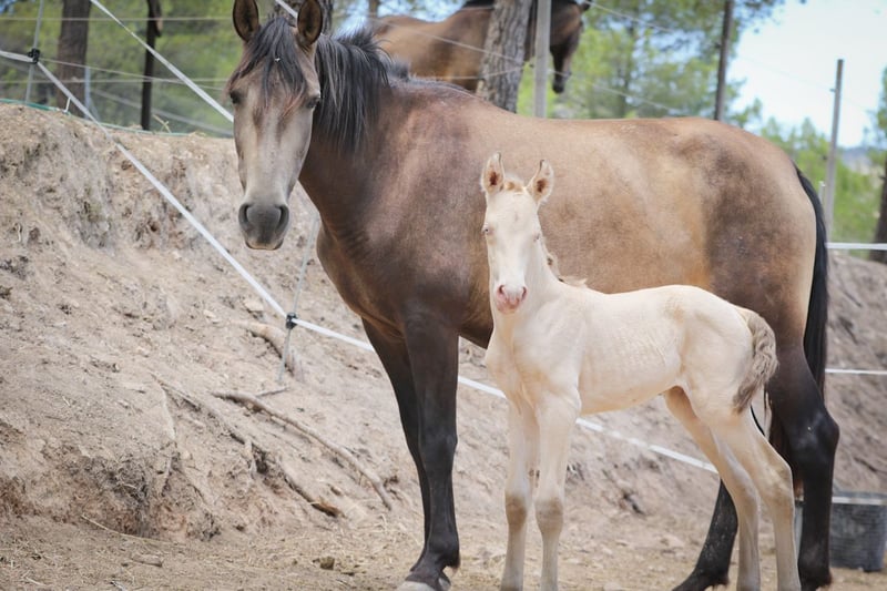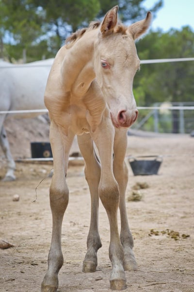 PRE veulen met ANCCE registratie in speciale vacht Perlino Bayo. Geboren 01.08.2023, hij is beschikbaar voor reserve. Zijn vader is Isabelo en zijn moeder is buckskin. Een zeer zelfverzekerd, lief en vriendelijk zelfgefokt veulen.