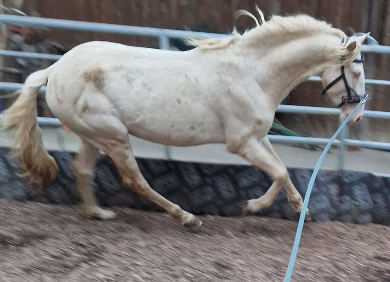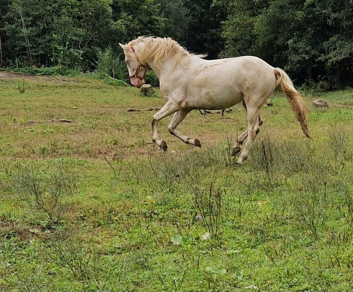 Z powodu prywatnych, tymczasowych zmian muszę sprzedać i wydzierżawić część moich koni hodowlanych. Ten piękny ogier jest jednym z nich. Test koloru na perlino lub smokeyblack (perła lub kremowy cenizo) jest w trakcie realizacji. Preferuję, aby znalazł dom, w którym będzie kontynuowane jego ujeżdżenie z zrozumieniem. Kiedy pozna swoją osobę towarzyszącą, zachowuje się wspaniale z ziemi. Rozpoczęliśmy już proces ujeżdżenia. Aktualny stan chętnie podam na zapytanie. Naprawdę sprawia przyjemność, szybko się uczy i chce współpracować. Może być również wykorzystywany jako ogier do krycia. W tym roku przeszedł kwalifikacje, ma ładne chody i kręconą, długą grzywę. Po stronie ojca pochodzi od Revoltoso XXIX oraz Terry i YM. Po stronie matki od Carmelo II, YM i Lovera. Wymagana jest doświadczenie w pracy z młodymi ogierami podczas krycia. Na życzenie dostępne są także inne konie, zarówno ogiery, jak i klacze w nietypowych kolorach, nadające się do hodowli i jazdy. Wszystkie znają zarówno stado, jak i stajnię i są bezpieczne przy ogrodzeniach. Możliwość zakupu. W przypadku ogierów wymagane i konieczne jest, aby w przyszłym roku mogłem je na krótko zabrać na nasienie. Wszystkie inne informacje na zapytanie.