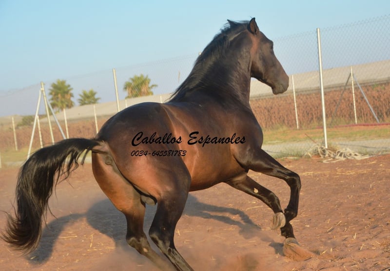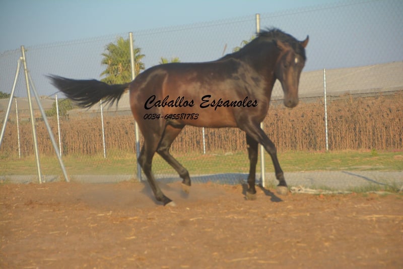 Este hermoso semental PRE tiene una estructura armoniosa y una base correcta. Es de tipo barroco y seguramente será un semental de carácter clásico. En su documentación se pueden apreciar los rasgos tradicionales del PRE. El joven es muy afable con las personas. En libertad, muestra con gusto sus tres buenos aires básicos. En manejo, es tranquilo y alegre. Un semental joven para su propia doma. El caballo se vende por encargo. Puede quedarse con nosotros para su entrenamiento. El examen de salud (AKU) puede organizarse a corto plazo. Transporte internacional disponible.