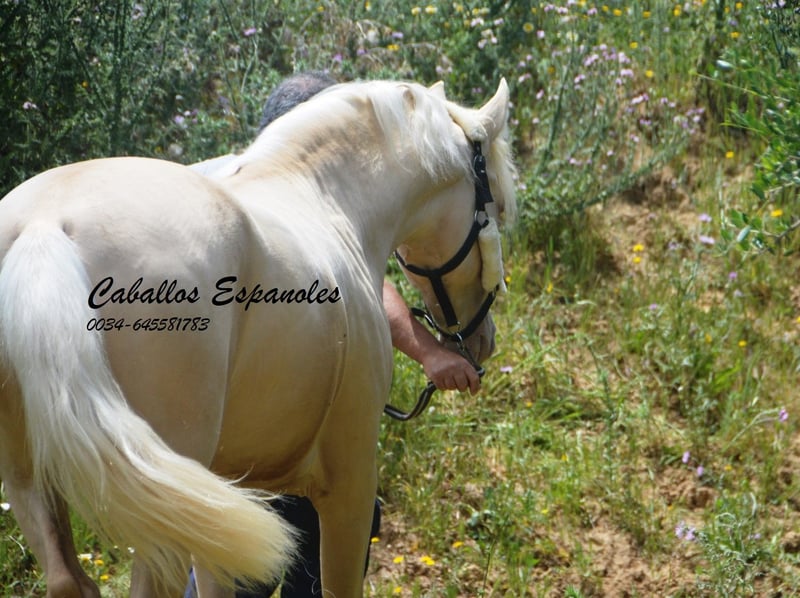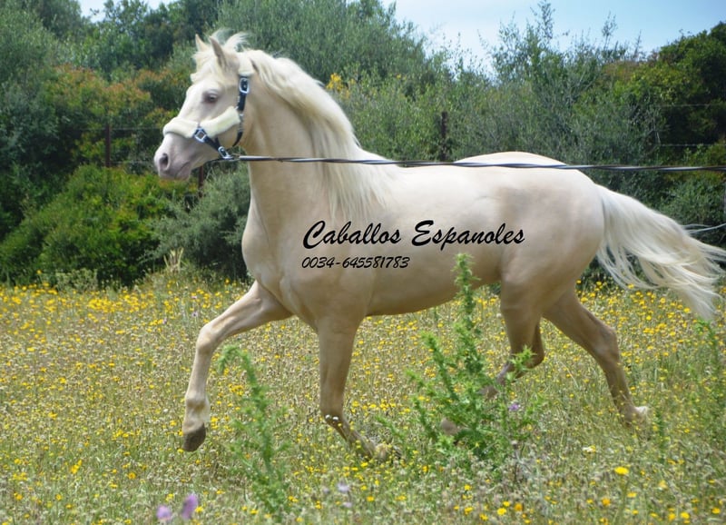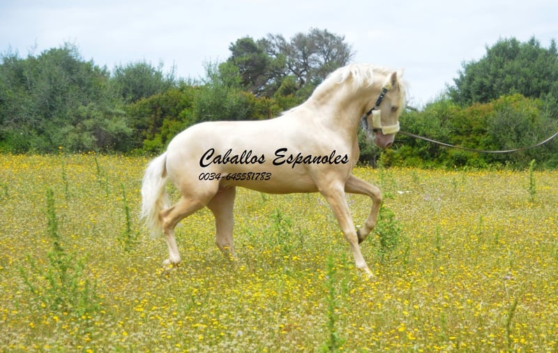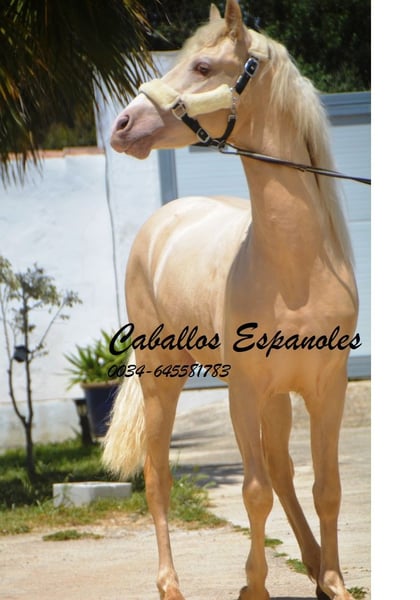 Un étalon PRE exceptionnellement beau, de couleur particulière – Palomino Perla. Le jeune cheval est bien construit, avec une tête expressive. L'étalon est doux en main et toujours curieux et intéressé. Lors de son débourrage, il a été très facile à gérer et il a déjà été en balade en extérieur. Un cheval fantastique pour quelqu’un qui recherche quelque chose d’exceptionnel. Origines : Paco Marí, Badal. Le cheval est vendu pour le compte du propriétaire. Il peut rester en pension chez nous si souhaité. Une échographie de contrôle sera organisée rapidement. Transport international possible.