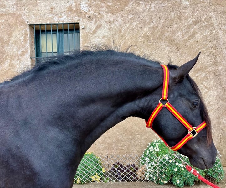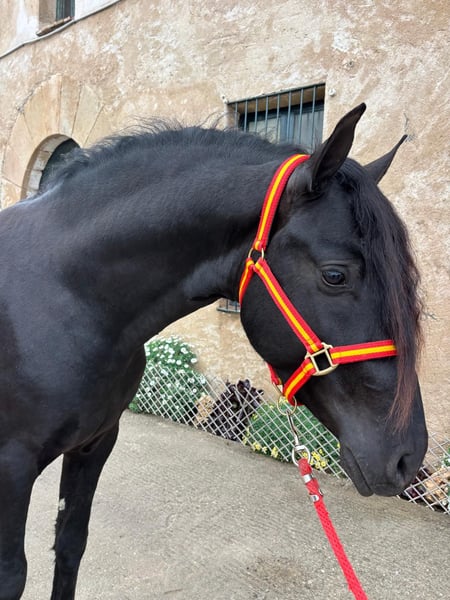Dieser traumhafte PRE-Hengst sucht seinen Herzensmenschen. Mit seiner beeindruckenden Ausstrahlung, seinem harmonischen Exterieur und seinen wunderschönen Gängen zieht er sofort alle Blicke auf sich. Wo auch immer er erscheint, hinterlässt er Eindruck. Charakterlich zeigt er sich sehr neugierig und aufgeschlossen: Er begegnet seiner Umwelt offen und interessiert und genießt den Kontakt zum Menschen. Dieser hübsche Hengst ist 4 Jahre alt und aktuell etwa 1,58 m groß. Ausgewachsen schätzen wir ihn auf 1,60-1,62 m. Er ist gerade frisch angeritten und macht dabei brav mit. Dabei zeigt er sich lernwillig, aufmerksam und angenehm im Umgang. Dank seines tollen Wesens und Potentials können wir ihn uns vielseitig vorstellen – ob in der Dressur, Working Equitation, für Shows, in der Zucht oder einfach als treuen Freizeitpartner. Er wuchs zunächst in einer großen Herde mit Stuten und Fohlen auf der Weide auf und durfte anschließend mit etwa 8 Monaten in einer Junghengstherde weiter aufwachsen. Dadurch konnte er sich sozial sehr gut entwickeln. Inzwischen ist er eingestallt und kennt auch die Boxenhaltung problemlos. Röntgenbilder liegen bereits vor und sind ohne Befund. Auf Wunsch kann er bei uns vor Ort noch kastriert werden, sodass er als Wallach in sein neues Zuhause umzieht. Ebenso besteht die Möglichkeit, dass er noch einige Monate bei uns bleibt und schonend weiter ausgebildet wird. Selbstverständlich darf er in dieser Zeit jederzeit besucht werden. 📍 Standort: Barcelona, Spanien Ein persönliches Kennenlernen vor Ort ist jederzeit möglich. Der Transport kann unkompliziert organisiert werden.