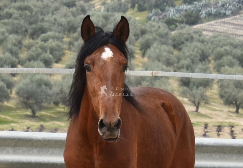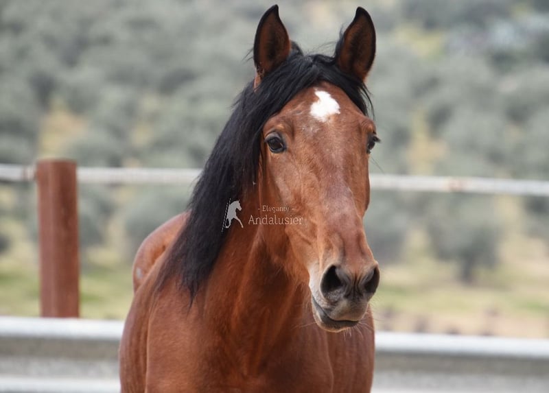 Hermoso y joven semental PRE de color marrón, con buenos movimientos.