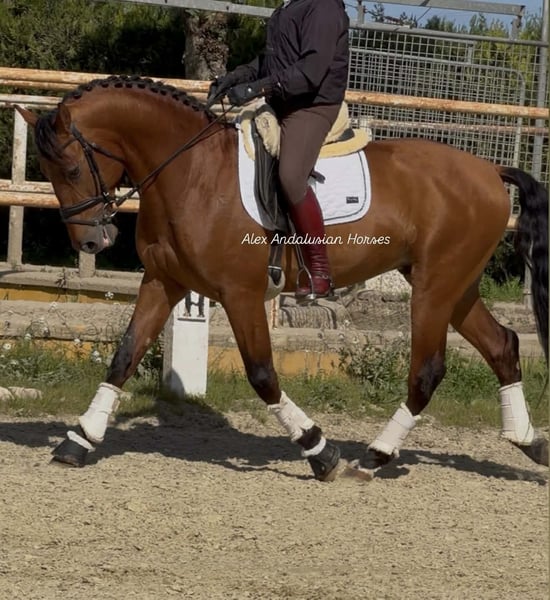 Really handsome PRE with full papers (ANCCE), he have 4 years old and 1.60cm. Nice body with expressive face, he have 3 good gaits and very good walk for dressage! Basic ridden, super safe in outside! He is piro FREE and he have good XRAYS! He have PRL gen . . If you like him and need more informations please contact/us : Alex (+34)657314412 We organize vetcheck, transport, quarantine, documents. We have more 100 horses available here in Spain! Follow/us our our social network like IG, Tiktok, Youtube, Facebook!