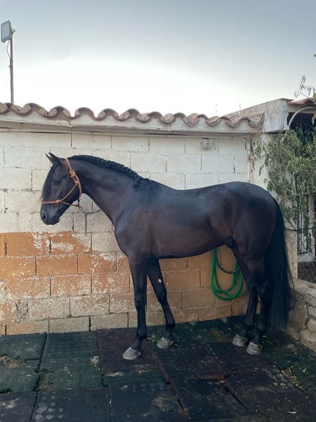 PRE 🇪🇸 ANCCE-Zertifikat Nachkomme von Esperado LV Vollblut 1,61 m Eleganter Hengst, mit hervorragenden Bewegungen, sehr stilvoll, schwarz mit üppigem Mähnen- und Schweifhaar. Ausbildung: - Unterstützungen - Pirouetten - Spanischer Schritt - Wechsel der Hufe