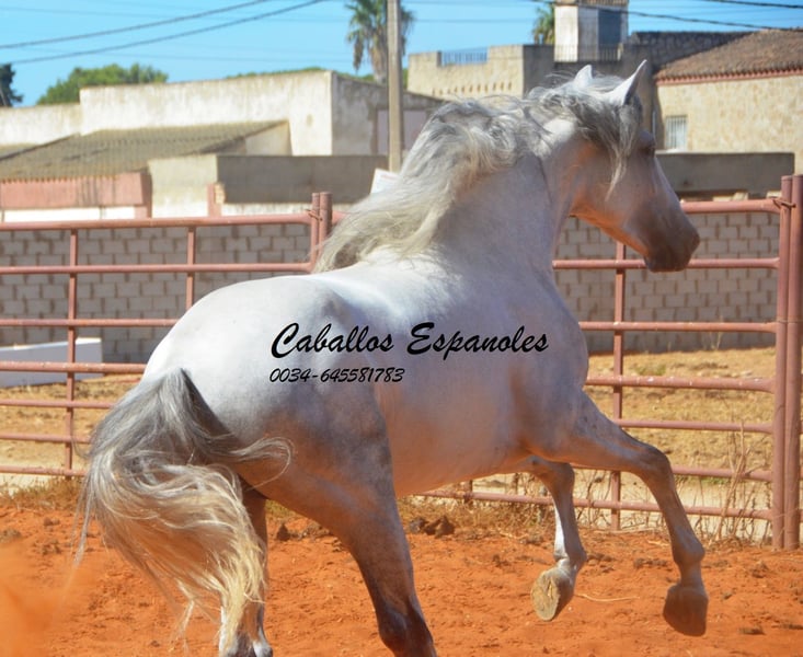 This expressive PRE stallion, with his classic head, stands on a correct foundation. The grey impresses with his three good basic gaits. In handling, he is always friendly and well-behaved. With a height of approximately 160 cm, he is perfectly suited for recreational riding and shows great potential for future tasks. The stallion has been ridden in the basic gaits and is easy to ride. He is ideal for riders seeking a reliable leisure partner who enjoys both trail riding and indoor riding. If you are interested or have further questions, please feel free to contact me. Arrange a viewing appointment and see this exceptional horse for yourself! The horse is being sold on behalf of the owner. He can remain in training with us. A veterinary health check can be organized at short notice. International transport available.