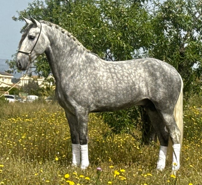 ✨HIDALGO: TYPEFUL & RELIABLE PRE STALLION/TYPVOLLER & ZUVERLÄSSIGER PRE HENGST✨ Breed - Rasse: Pura Raza Espanola (ANCCE) Gender - Geschlecht: Stallion/Hengst Age - Alter: 2022 Height - Größe: 1,60m Education - Ausbildung: Piaffe, Half-Pass/Traversale Location - Standort: Spain/Spanien ✔️fully vetted with all x-rays ✔️Cat. 10 - 12,5 Hidalgo is a very typeful & baroque PRE Stallion with a top character! The 4 years old stallion is already nice ridden and coming with three excellent gaites for the classical dressage. Hidalgo is very reliable under the saddle and loves also to hack out. For sure he s coming with full ANCCE papers and a hugh vetting. For more Informations contact us via What s App ➡️ +34 622 509 702 We speak 🇬🇧🇩🇪🇪🇸