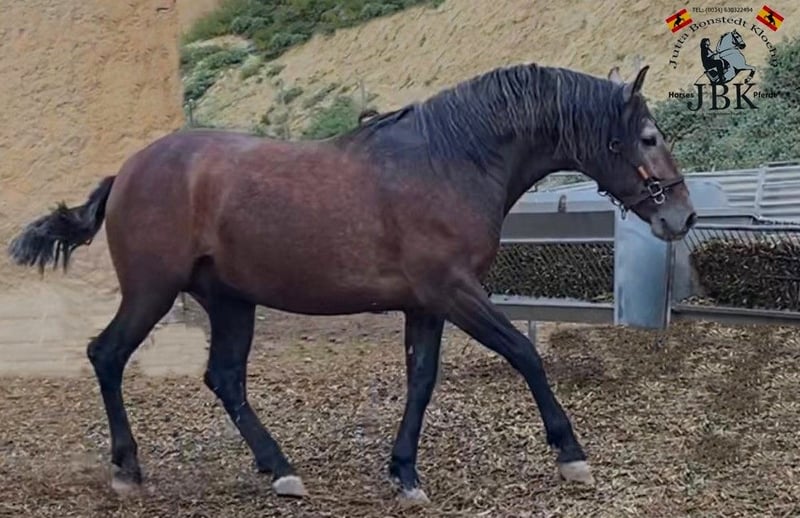 De barokke PRE hengst Marques overtuigt over de hele lijn niet alleen met zijn exterieur en expressieve beweging, maar ook met zijn gouden karakter. Zijn bloedlijn is zeer rijk. In de vaderlijn vinden we veel Yeguada Miitar exemplaren, die wijzen op super functionaliteit. In de moederlijn heeft hij een aantal geweldige Cartujano van het Terry ras, bijvoorbeeld Hoscon III en Gorron II. Marquez is geboren op 20/05/2022 en is in longeerconditie. Hij is momenteel 1,62 meter groot.