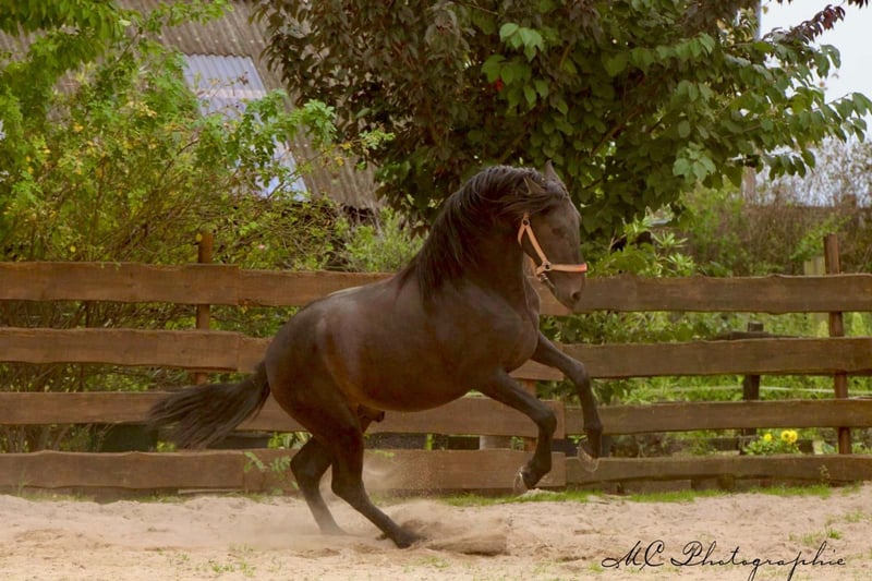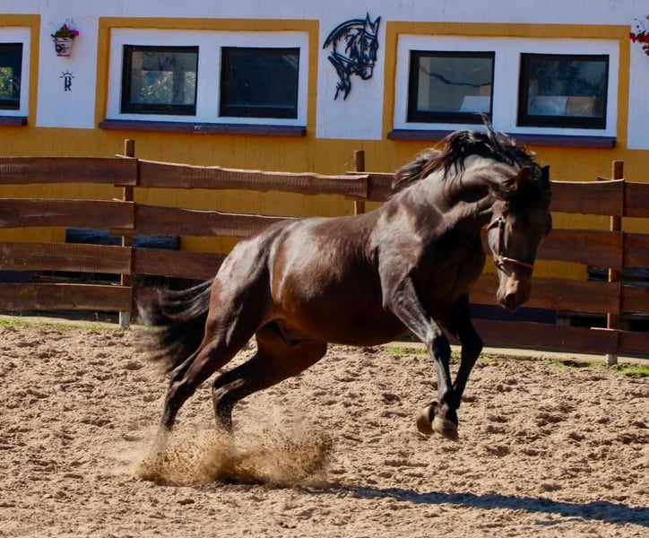 **Sales Advertisement: Dream Andalusian Stallion for Sale** We are offering a beautiful PRE stallion for sale. He will turn three years old in October 2025 and is still enjoying his youth. He is loadable and farrier-friendly. Barefoot. **Features:** - **Breed:** Pura Raza Española - **Gender:** Stallion - **Year of Birth:** 2022 - **Color:** Dark Brown - **Height:** 163 cm - **Use:** Dressage, leisure, later breeding. (He comes with a genetic analysis for color inheritance.) This elegant stallion impresses not only with his appealing appearance but also with his friendly character. The stallion is healthy. He lives in a species-appropriate stable and has regular contact with other horses, having grown up in absolute freedom in Spain. If you are interested or need further information, we look forward to your message. Viewings are possible by appointment. **Your new dream horse is waiting for you!**